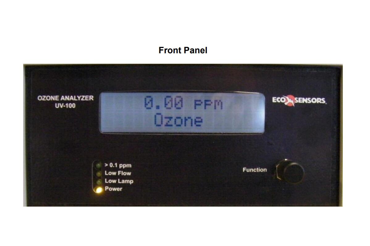 型號UV-100是專門為臭氧設計的紫外線吸收分析儀。它使用一個水銀燈過濾吸收在254納米。Eco Sensors設計緊湊,采用 很新的數字微處理器技術。UV-100的標準校準范圍是0-999 PPM。它的輸出是一個LCD數字顯示,0-2.5 VDC, 4-20 mA,和一個時間和日期戳的數字數據流,用于外部讀取和數據記錄。數據通過串口和USB輸出。還有一個內部數據記錄器,可存儲和轉發約90小時的數據。操作原理見附錄D。