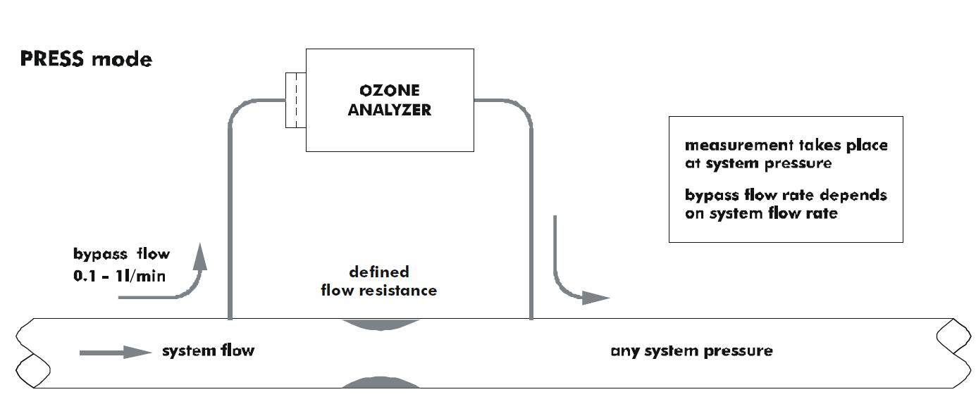 兩種連接分析儀到臭氧系統的模式,全流量和旁路,當然也需要分析儀配備一個內部壓力傳感器,這是抵抗臭氧。壓力傳感器的壓力范圍,以及內部微處理器執行的壓力補償范圍,必須與臭氧系統中實際可能發生的壓力范圍相匹配。我們提供的壓力范圍為0.5-1.5至0.5-4.0 bar。
