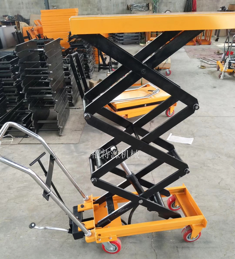 小車由載貨臺面、底盤、升降裝置、行走系統、支撐裝置、液壓系統及控制系統等組成。
