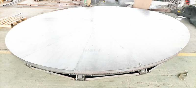 摩擦輪驅動是旋轉臺常用的方式之一,通過旋轉驅動器的工作帶動摩擦輪工作,摩擦輪的工作帶動臺面的旋轉,該方式噪音小。旋轉的中心,無論是圓盤類型還是圓柱類型,都不能負荷重量。重量一般分布在四周的輪子上,輪子安放于旋轉結構或支撐在地面的滑道上。