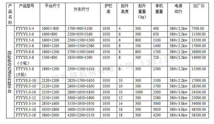 ▍移動(dòng)升降機(jī)常規(guī)參數(shù) / Product Parameter
